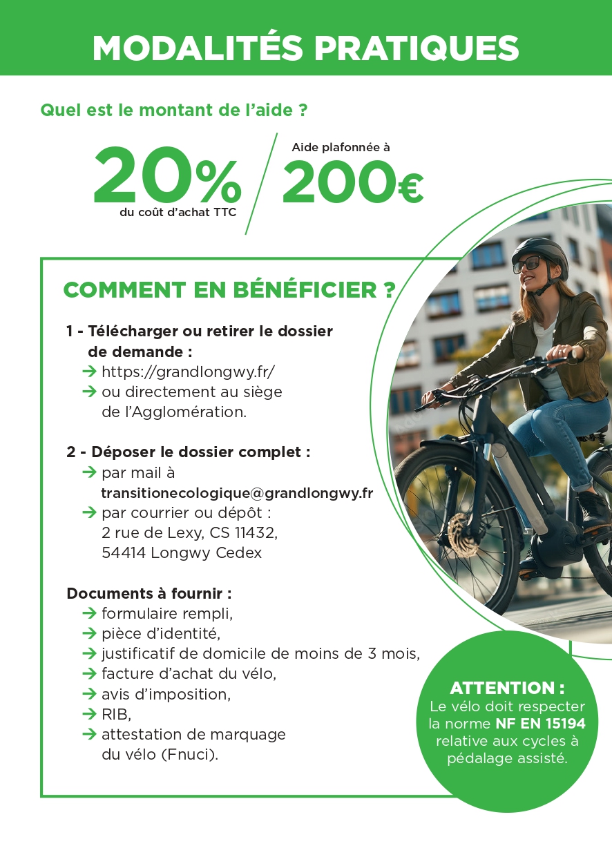 • Valable pour un VAE neuf ou d’occasion, acheté chez un professionnel
